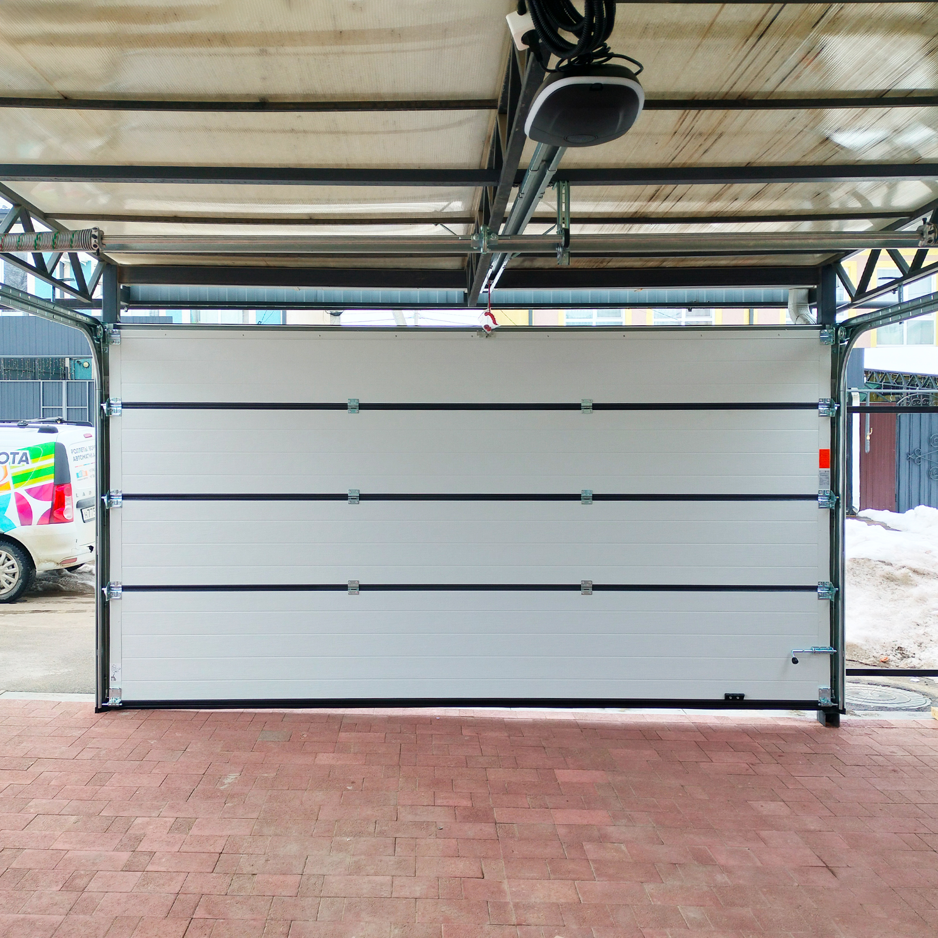 Система работает бесперебойно и надежно. Установщики поработали быстро и качественно, объяснили все нюансы использования. Возможность дистанционного управления добавляет удобства, особенно когда возвращаешься с покупками или в дождливую погоду. Рекомендую